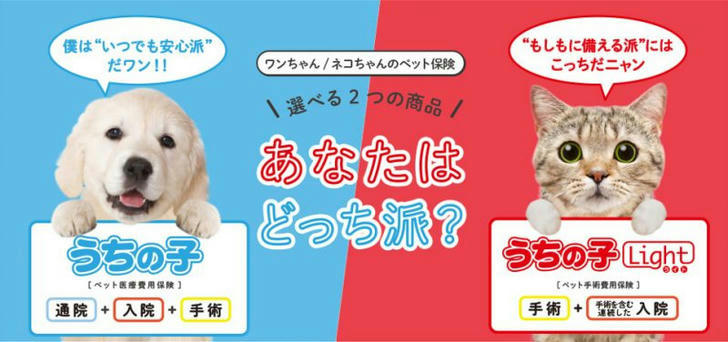 小型犬=アイペット、猫=SBIペット。
